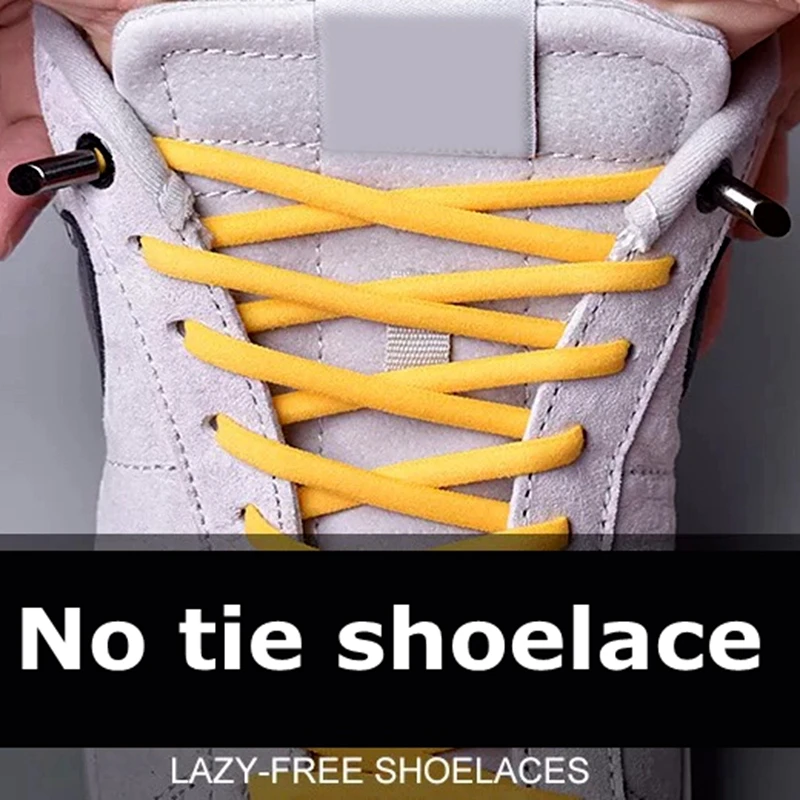 1Pair No Tie Shoe Laces Elastic Metal Buckle Round