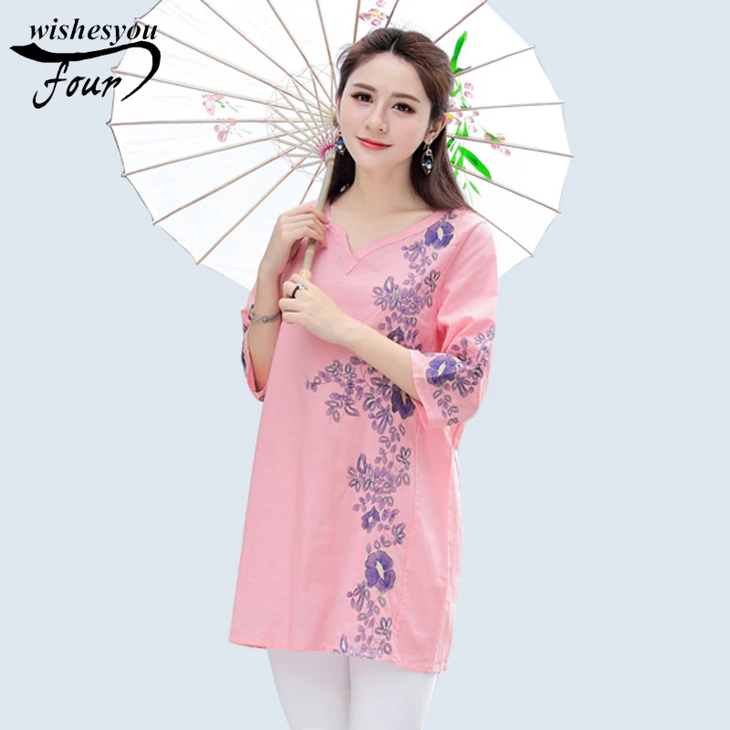 2018 Summer New Embroidery Wild V Neck Women Shirt Casual